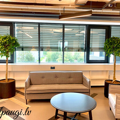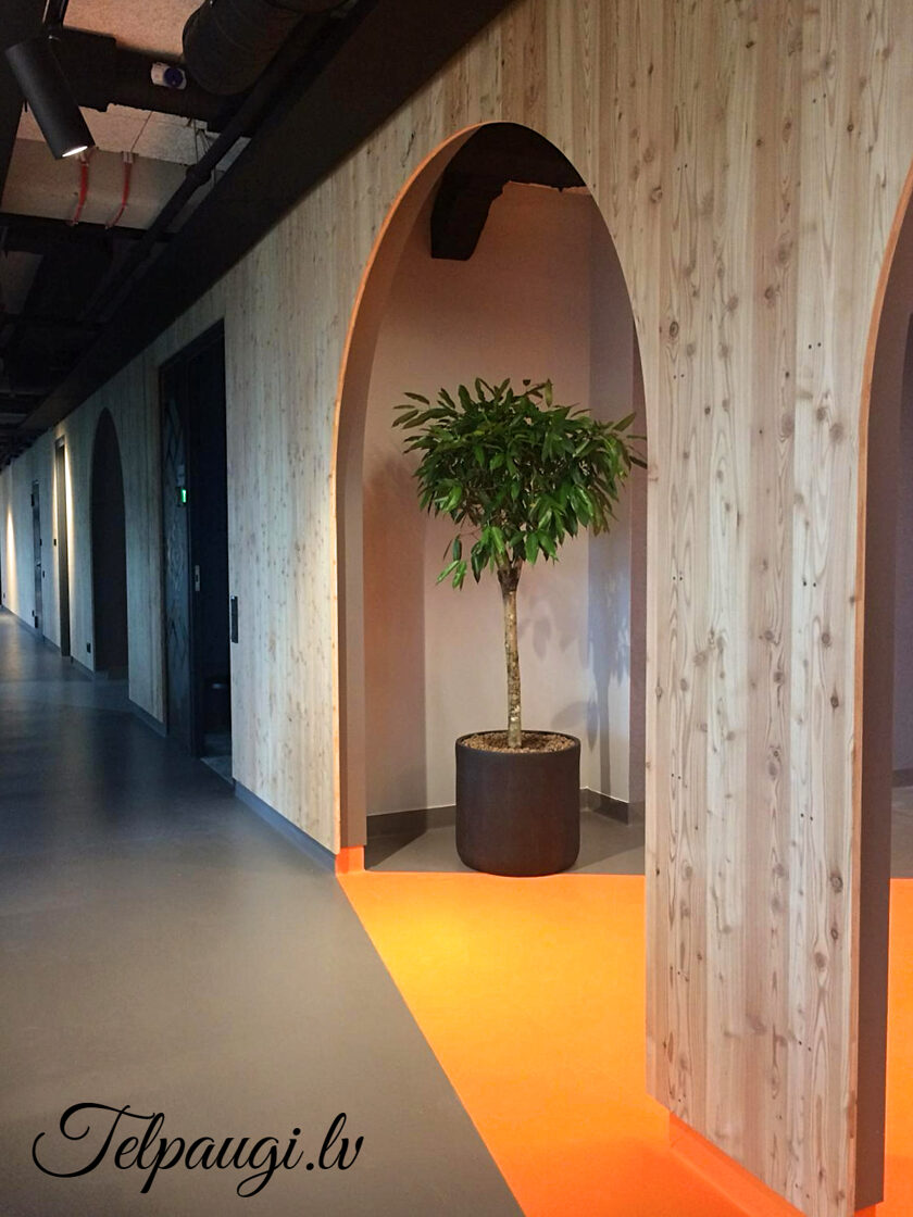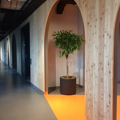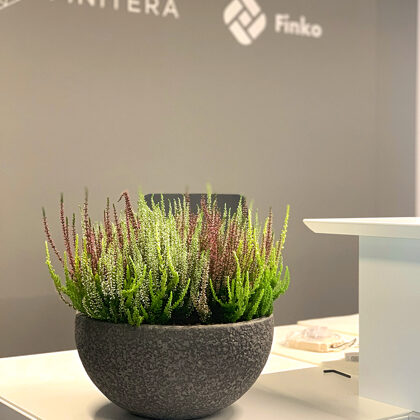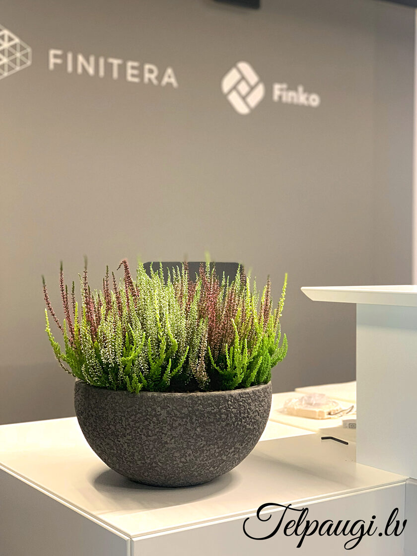 · Empfangsbereich: Heidekraut (Calluna vulgaris), Ficus benjamina Raindrop in speziellen Zementfaser-Töpfen.
