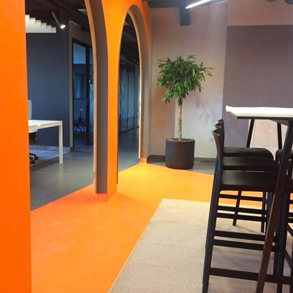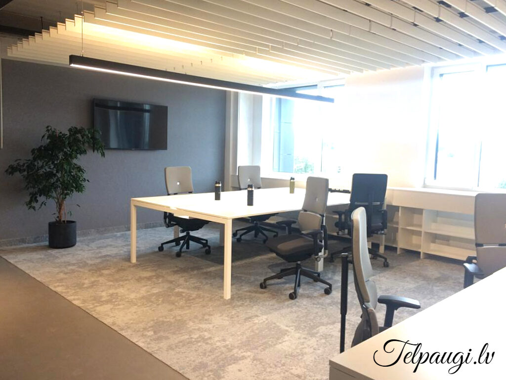 Jeder Raum individuell gestaltet, da moderne Büros in Zonen gegliedert sind (Arbeit, Erholung, Besprechung etc.).