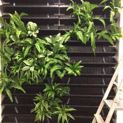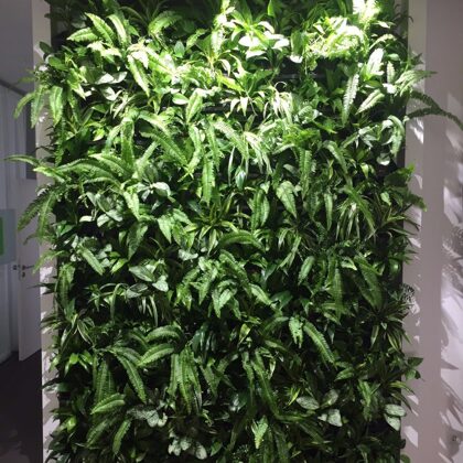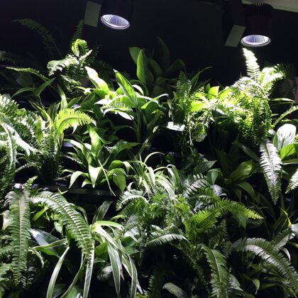 Letztes Foto: grüne Wand nach 2 Jahren – Vitalität nur mit zusätzlicher Beleuchtung gewährleistet.