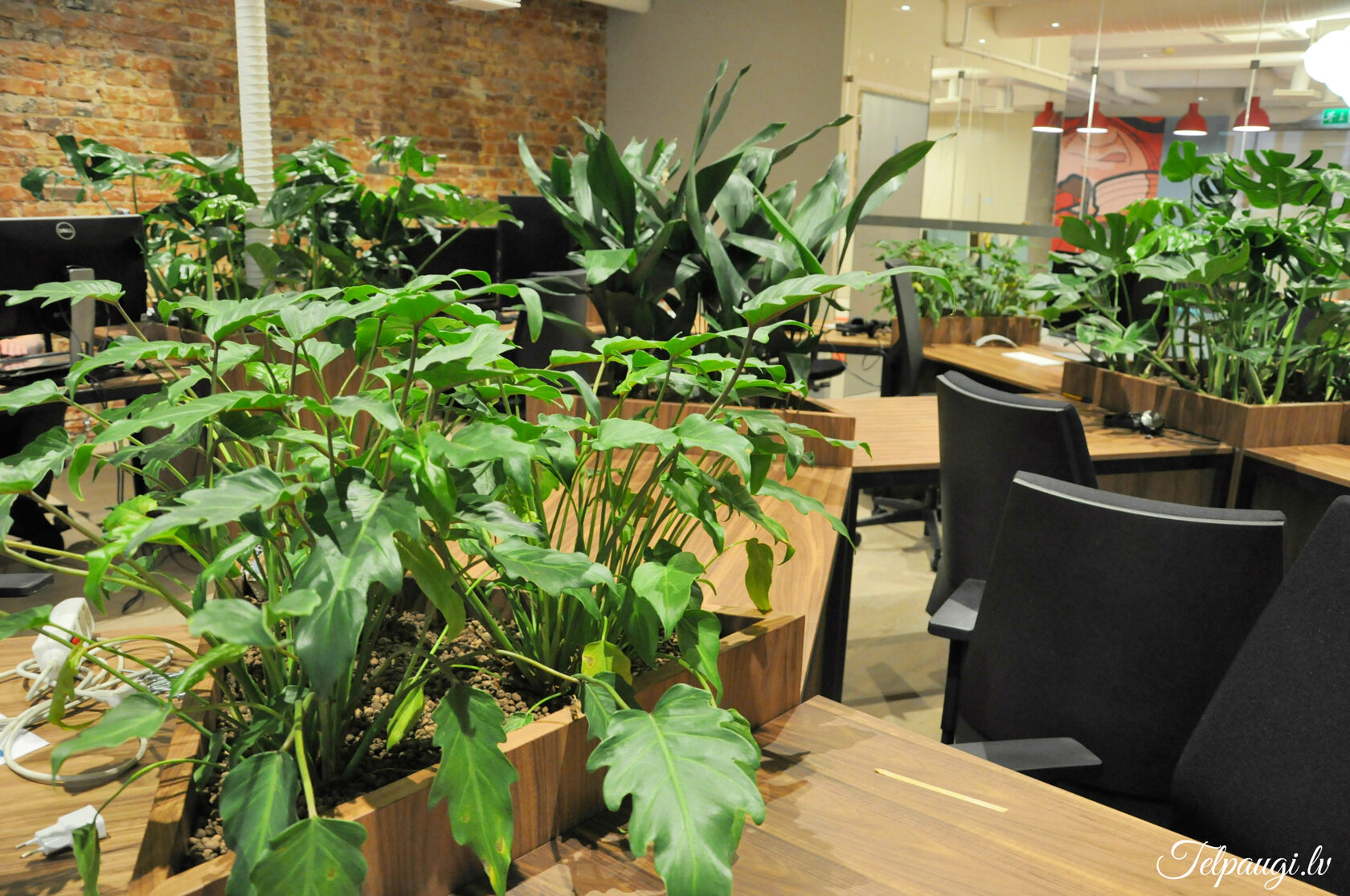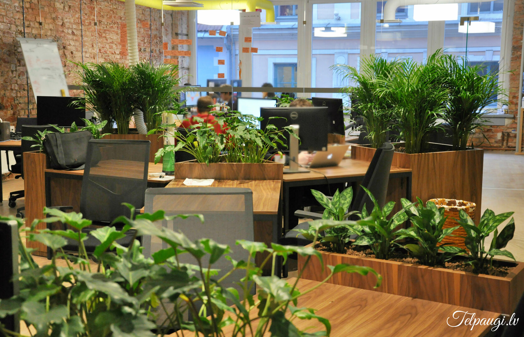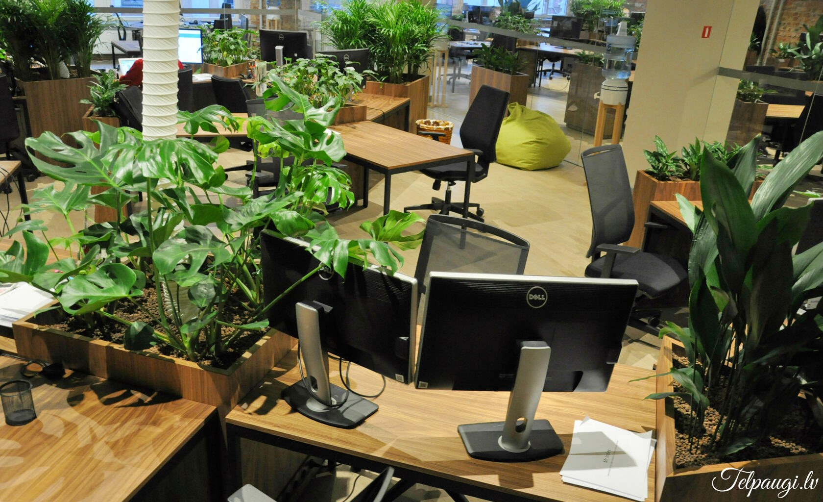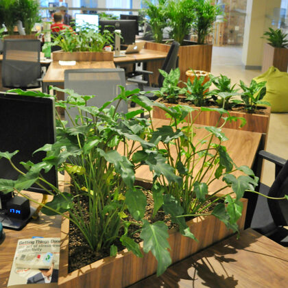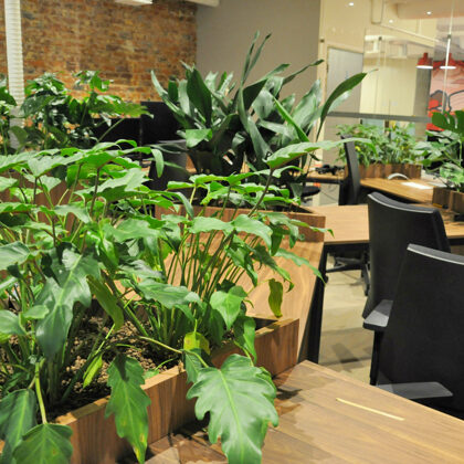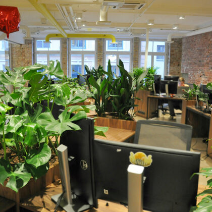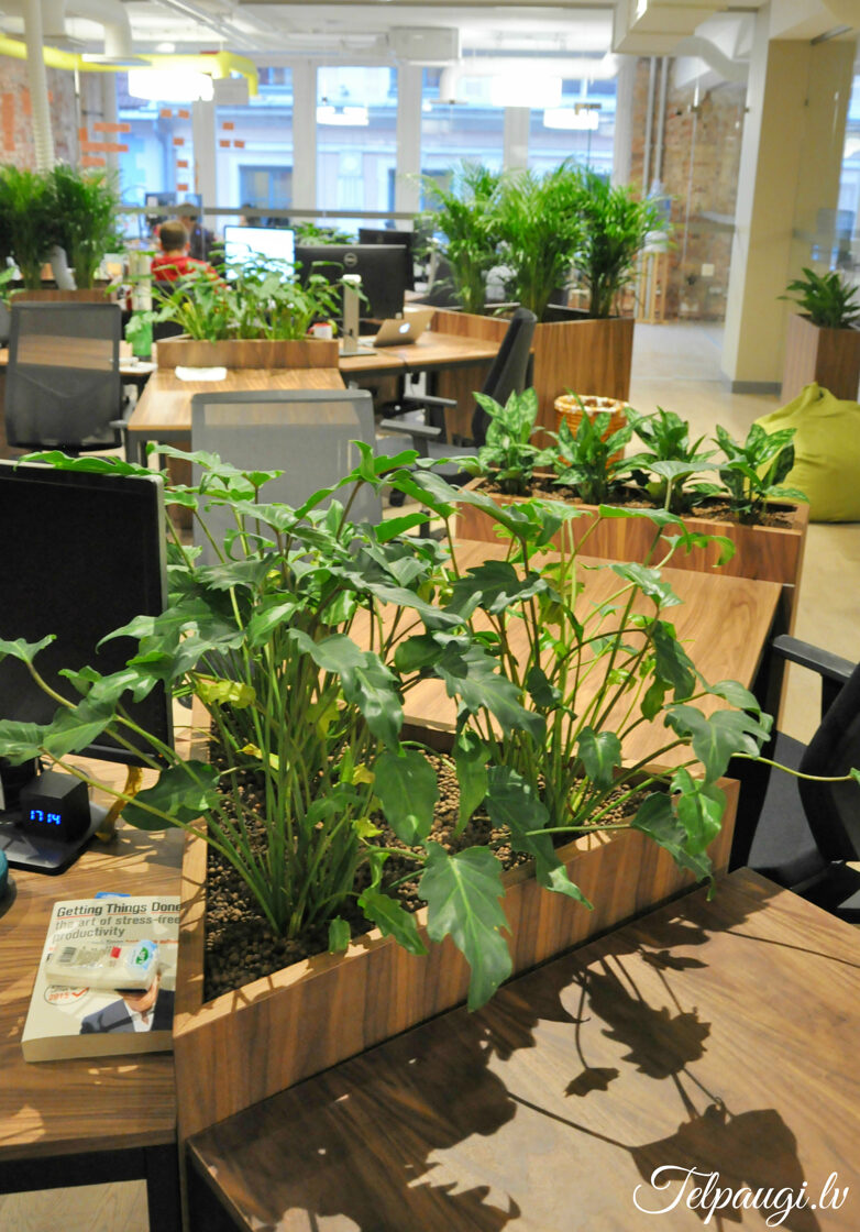 durch Annvil – offenes Büro, Arbeitszonen mit Pflanzen akzentuiert.
