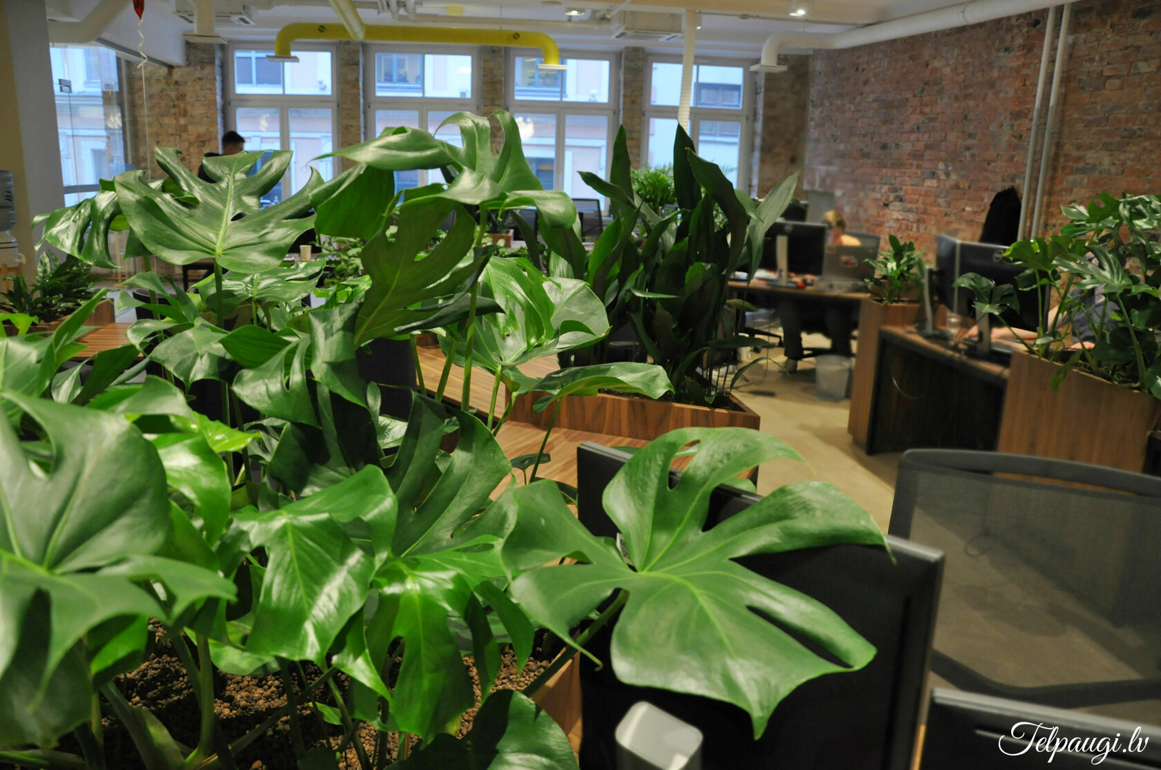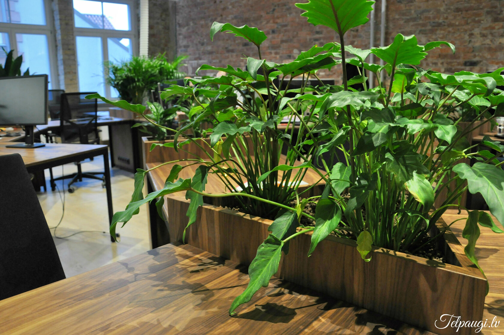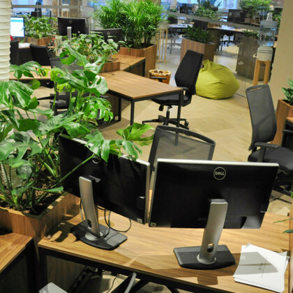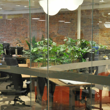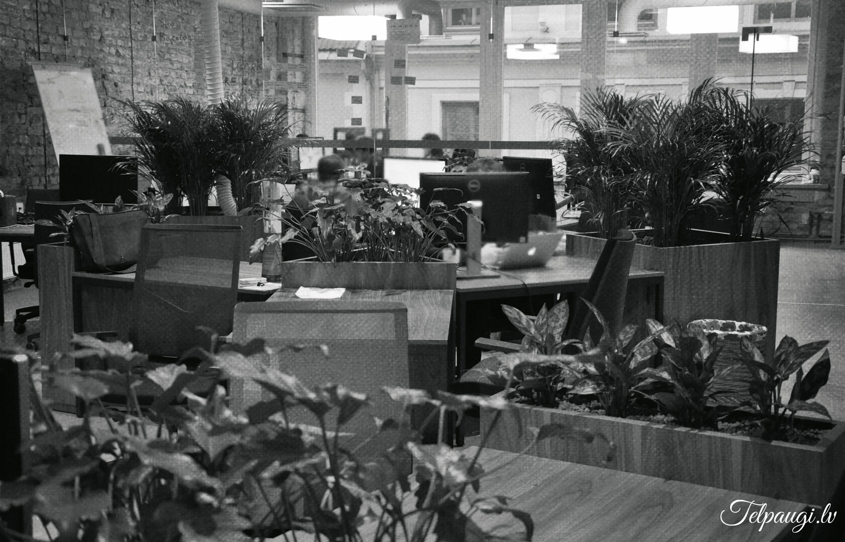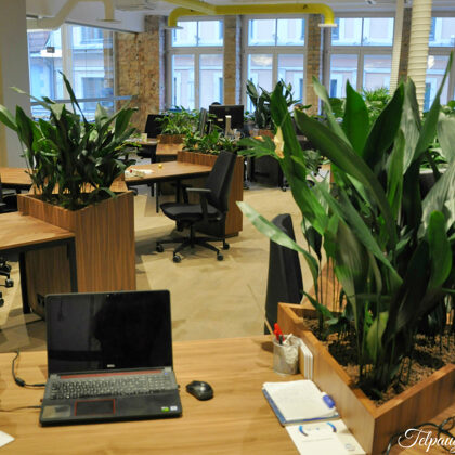 durch Annvil – offenes Büro, Arbeitszonen mit Pflanzen akzentuiert.