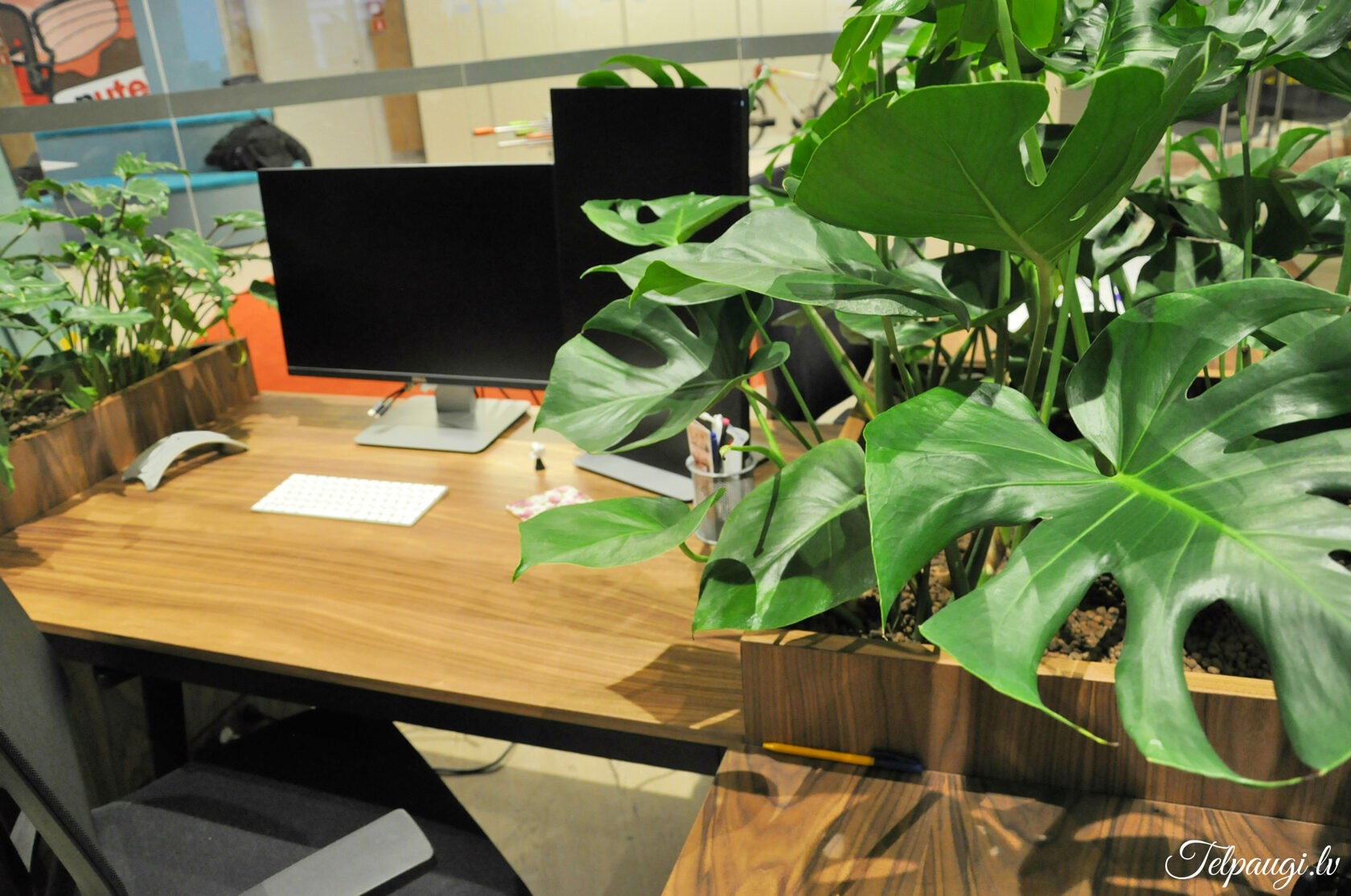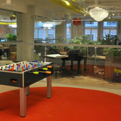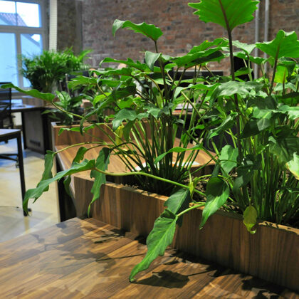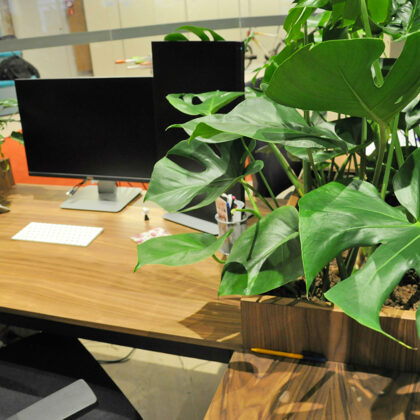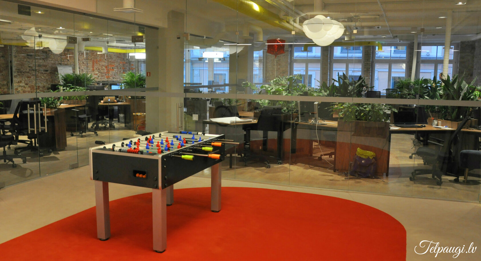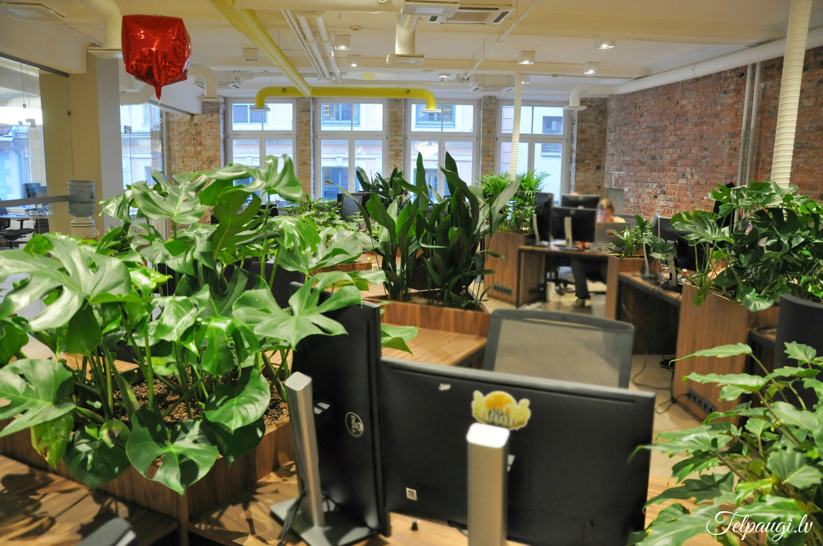 durch Annvil – offenes Büro, Arbeitszonen mit Pflanzen akzentuiert.